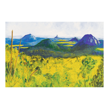 Card No 2534. 'Glasshouse Mountains' from an original painted with the mouth by William W Mooney.